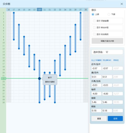 (3)断开或删除任意关键帧,可控制牙齿移动节奏
