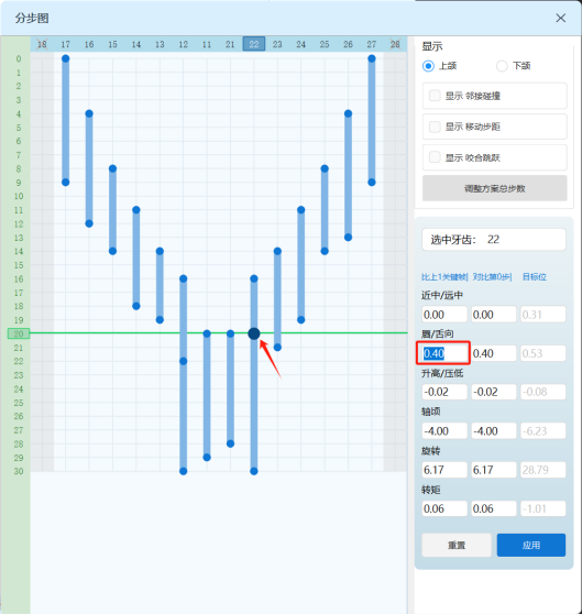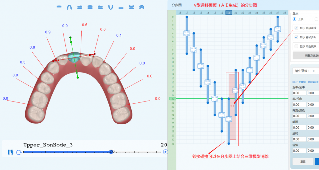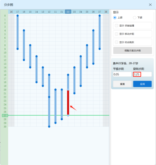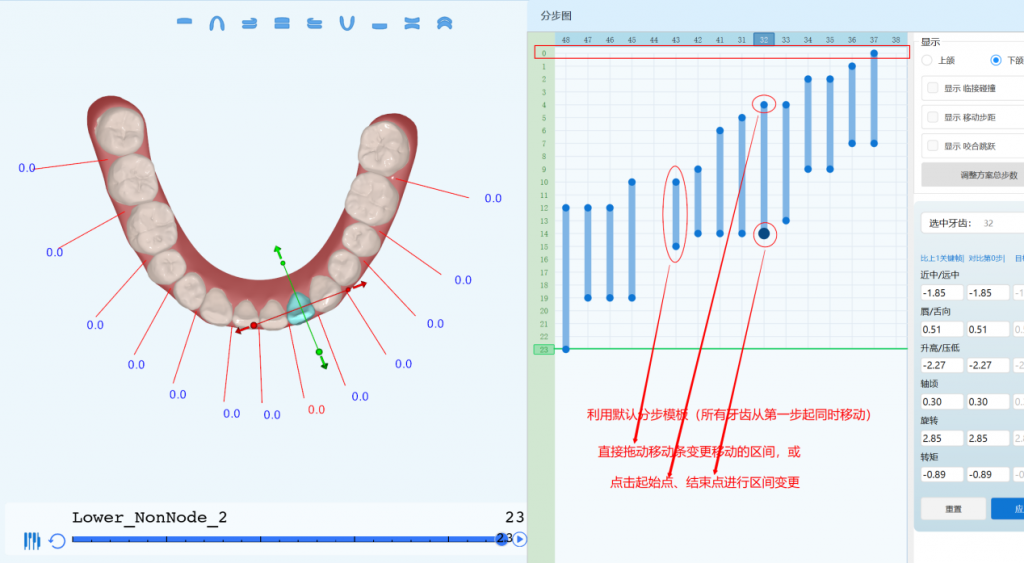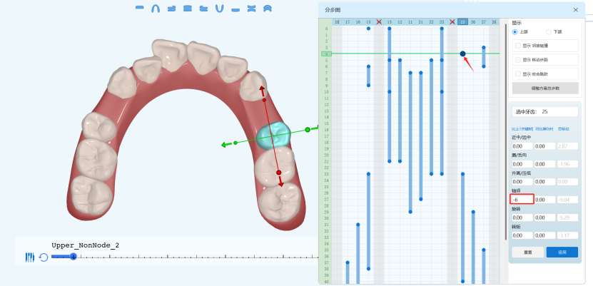 3. 单颗牙位不同移动方向、同移动方向不同移动量的分步设置