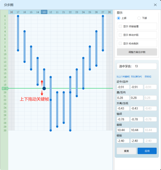 (2)拖动关键帧可调节牙齿移动速率